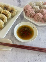 肉団子の餅米蒸しとニラまんじゅう 肉団子の餅米蒸しとニラまんじゅうを作ってきました 夕ご飯💕