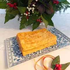 江戸厚焼き玉子 ■作品内容毎年我が家のお正月に欠かせない玉子焼きです。甘い江戸前のお寿司さんの玉子焼きです。 ■工夫ポイント甘露出しを作って、銅板のフライパンで焼いています。甘露だしの出来で味が決まります。