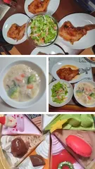 チキンの照り焼き、シチュー、サラダ
