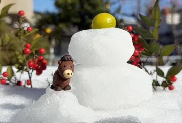 ■作品内容 雪掻きのついでに遊んでみました樹脂粘土で娘が作った干支ウマと昨日降った雪で作った鏡餅 溶けるまでの期間限定の飾りです みかんの代わりはキンカンです■工夫ポイント 立髪をしっかり作りました