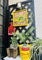 お外のB・B亀さん イエローフレームが更にパッと明るくしてくれます。ソテツ🌴 うちわ🌵との相性も良くて、夏を感じます👍‼️ B・Bの亀さん🐢✨ ゆっくり🐢のんびり🐢歩みたいなー!って気持ちで作りました😊