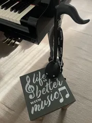 B&Bと音楽 ピアノの部屋に置きたかったスツール。なのでこの柄で作った作品です♪ 昨年娘の合格祝いに買ったオタマトーン(勝手にタマコと命名)と共に📸