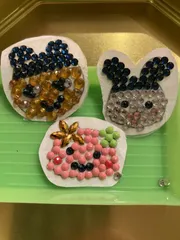 ダイヤモンドアートのWSなどで、余った沢山のビーズ✨これを使って、たまごっちのキャラクターを次女と作りました👧ちょっと似てて、かわいい🩷