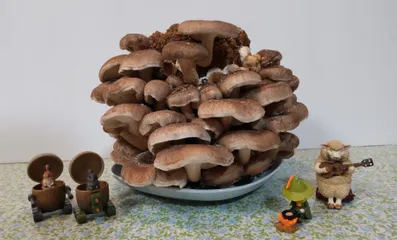 椎茸栽培(6日目) 密集しているので、夕食に6個間引き、オーブントースターで焼いていただきました🍄 味付けしないで、ジューシーな椎茸❣️👍明日は、wsのレシピで食べたいと思ってます。