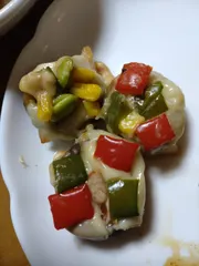 椎茸ピザ 間引きした椎茸でピザにしました。いつもは、バターと塩味を聞かせた、椎茸ステーキにするのですが、痛みかけた、野菜消費目的です。 椎茸に十文字の切り込みを入れ(飾り包丁かな?)、裏返し、塩、胡椒をケチャップまたはピザソースを塗って、スライスチーズ、トッピングです。オーブントースターで、椎茸に火