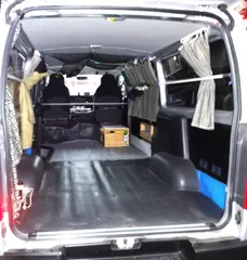 1日車検終了 1日車検終了し、荷台は 空っぽ です。これから半日位かな?、かけて 現状復帰です。 ↑ カ-テン邪魔?かな。前泊で 車中泊するので全方向にないと眠れません。 杉角材で 内側のタイヤハウスに合わせて上げ底にします。 車検前日にこのまま車外に抜き取るだけ。 &