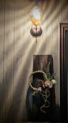 お正月飾り 先日アレンジしたしめ縄飾りをようやく玄関に飾ることができました。うちの玄関はかけられるところがないのでロングボードを作って壁に立てかけてみました。素敵なしめ縄を作られたお友達のお父様とのコラボ😍素敵なお正月を迎えられそうです。