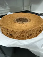 チョコチップシフォンケーキをスポンジ型で焼きました。100均セルクル使います。💪