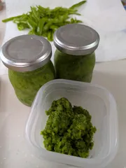 柚子胡椒 ■材料青唐辛子、青柚子、塩(材料の20%)今回は、青唐辛子&青柚子110g(計220g)塩44g ■作り方青柚子はピューラー又は包丁で皮を剥く(なるべく白いところは残さない)青唐辛子は必ず手袋をしてから半分に割り種を取る2つをある程度みじん切りにして塩を加えてフードプロセッサー又は
