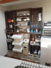 アレンジアワード2022 食器棚 見せるキッチンにしたく、カラーBOXと板でジャストサイズの食器棚作成!自分のこだわりは、その時の気分で棚の高さを変えれるようにしたところです