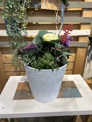 迎春寄せ植えをして来ました😅暫くぶりの寄せ植えでした🎶中々、上手く行かない寄せ植えでした😅葉牡丹を最初に位置決めをし、ストックが門松に見立て、ヤブコウジ、ビオラ、シロタエ、アリッサムを植えて行きました。ちょっと、成長したら。綺麗になるかな⁉️ラッピングをして頂きました😊ありがとうございました💕