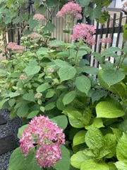 紫陽花(ピンクのアナベル) 地植えで大きさなり過ぎ🪴刈り込みしてから鉢に植え付けました。白も有りますが🌸ルビーのアナベルがほしいのです💕