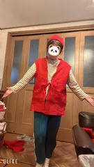 今晩から主人の還暦祝いなので日光に家族旅行いきます、雨ですが💦☂️ 赤ちゃんちゃんこ、100均とかドンキにはなく買うのももったいないから、セリアのサンタ🎅服をリメイクしました💡切った袖の布を使い、紐とポケットも作りました〜♪後ろはこんなかんじ。クビ周りだけギザギザカットを隠すために縫いました。周りの
