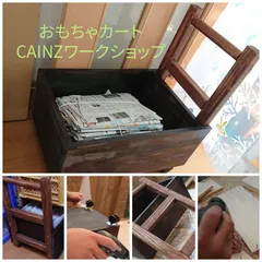 使い道色々 おもちゃカート★ワークショップ カインズワークショップで作成しました。箱部分はパイン集成材持ち手は丸棒 他は垂木 裏にはキャスターがつきます。よく動く。カラーは2色が可能で 超撥水のブラウンとダークブラウンを使用しました。(今回は全てのカラーが選べます)大変なのは丸棒の取り付け。我が家にはチビッ子がいないので新聞置場にな
