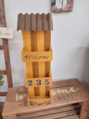 壁掛け3段プランター ①ビスじめの細いところが難しかったです杉板が年輪の色が二段階に分かれているのを生かしてパインで塗ったらツートンになりおしゃれな仕上がりになりました!②ステンシルの色をパインに乗せたら目立つ色はアイアンブルーなくなり次第終わりなのでいい色だわ〜