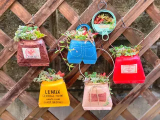 リメ缶Bagに多肉の寄せ植え🎶 ■作品内容空き缶で作ったリメ缶Bagに多肉の寄せ植え❤️ ■工夫ポイント多肉さんがポロッと抜けてしまわないように、根付きや茎の部分を長くして深めに挿して寄せるようにしました😊吊るして飾れるリメ缶Bag、可愛いですね🥰❤️置き場がなければ吊るしちゃえ😆‼️ ※以下多肉ハック部門のみ