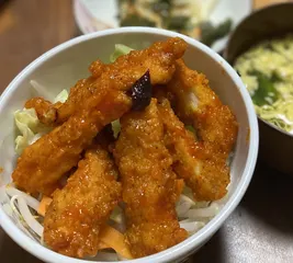 今日の夕飯🍽️半額のヤンニョムチキン丼