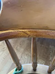 ダイニングの椅子の修理のその後 ■材料 木工用ボンド サンドペーパー(600番) ニス(水性) ハケ ■作り方 割れてしまったところをサンドペーパーをかけます。 削った部分に木工用ボンドをつけます。 クランプを使って一晩固定させます。 翌日ク