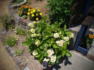 紫陽花シーズン 先月おつとめ品で買ってきた紫陽花は花が終わり、前からあった紫陽花がシーズンに入りました。白のあじさいもかわいい😍縁取りがピンクのあじさいも可愛いです。イングリッシュラベンダーも満開です。