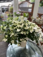 アレンジアワード2022 我が家の紫陽花PWのラグランジアブライダルシャワー。6倍花が咲くそうで次々に花が咲いてとてもキレイで品のある紫陽花です。