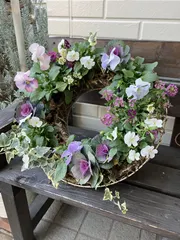 前回麻布等で直したリングリースのバスケット、ようやく寄植えしてみました。 なんか今ひとつですが、今シーズンは良しとしようと思います🤭