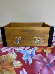 べるん様 花文字のステンシルがどうしても欲しくてネットで購入しました。😅 波釘合計32個も打つつけないといけなかったので、大変でした。辺り一面ガンガン大きな音しまくりでしたよ。プリザの液の収納BOXにするつもりです🤗