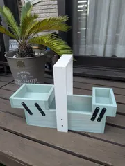 両開きツールボックス この間WSでツールボックスを作りました😊 私にしては珍しい色を選びました♡♡何を入れて使おうかな〜? ステンシルを入れたいけど、失敗したらおわりなので暇な時にやろうと思います(笑)