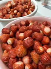 いちご狩り🍓 今日は近所にあるいちご農家さんでいちご狩りをさせていただきました🍓毎年、出荷が終わって苗を片付ける前に採らしてもらっていてジャムにしたり冷凍してスムージーにして楽しんでいます😁買ったらすごい金額になるのでありがたいです😅ヘタをとって仕分けしたら全部で6.5㌕ありました😳感謝感謝です❣️スムージー用5