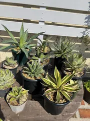 アガベ集合♡ 暖かくなってきて、アガベもイキイキしてきました❣️笹の雪のこのペンキを塗ったようなのが好きなんです🥰