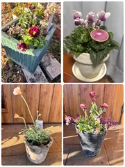 福袋の寄せ植え等 花苗の福袋。やっと植えましたが風で⁇ストックがごめんなさいしたり😮💨これからがどれだけ元気になるか😅マーガーレットとシクラメンは個別に。濃いめのビオラは寄せ植えに足しました。