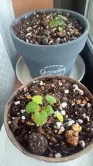 種からいちご苗を植え替え🍓 種から育てているいちごです🍓🌱今まで一鉢に2苗植えていたのですがなかなか大きくならないので1苗づつに植え替え、少し肥料も入れてみました🌱大きく育ってね🍓🌱