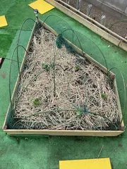 レタス・グリーンリッチ、ブロッコリー・ピクセル、茎ブロッコリー・スティックセニョールの苗植え ↑グリーンリッチ↓ ブロッコリー・ピクセル、茎ブロッコリー・スティックセニョール最寄りJAで買った野菜苗各6個を植えました。↓鳥の被害が予想されるので、100均ネット被せておきました。