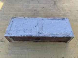 先月末のモルタル仕事(リンク→ https://diy-square.cainz.com/chats/qtks4g0a2ppbdn9e )で、余ったモルタルに砂利を混ぜて型に詰めておきました。6日ほど経過、確認してみると固まったようなので、型から外しました。アイキャッチ画像は、型から外す直前の様子で