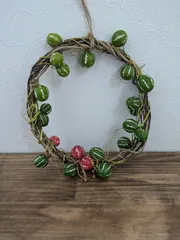 沖縄スズメウリのリース 出掛けた先のイベントで沖縄スズメウリのリース作りしてきました😍下の真ん中に赤の実が来るようにするのが大変でしたがとても楽しく参加できました👍✨