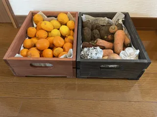 思いを込めて誰かに贈るもの 主人は、日頃から畑で美味しい野菜や果物を作ってくれています😆今までは、その作物を段ボールやビニール袋に入れてましたが、なんだか味気ない😅💦主人に感謝の気持ちを表して、作物を貯蔵しておくベジタブルBOXを作りました😆💪🎵いつも新鮮で美味しいよ😘ありがとう💕