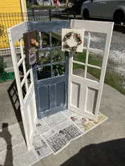 アンティーク風ドアオブジェ(3枚重ね) 昨日3枚目ドアオブジェができたので、作ってみました。蝶番を『抜き差し蝶番』と言うのを使ったので、2枚や3枚にできるように仕上げてみました。 観音開きで作ったので、3枚で畳めません。よって1枚外して片付けます🤭 〜追伸〜『抜き差し蝶番』ですが、今回の物は100均のものですが、販売中止なのでもしお探し