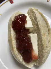 夜食 自家製イチゴジャムクリームチーズ 今夜の夜食は。。。 いちごたっぷり自家製ジャムとキリークリームチーズのコラボ!これ、最強のコンビネーション❣️ フレンチロールは、コストコ製 うんまっ!!