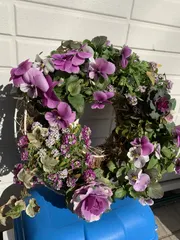 フラワーリース ビオラ、葉牡丹でフラワーリースを作ってみました。リースを下げる場所がないので宅配の牛乳BOXに載せてます。もちろん宅配のある日はよけてますけど〜 ^_^早くリースを飾れる台をDIYしたいです。