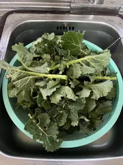 かき菜の胡麻和え 菜園のかき菜が無限ループのように採れます。畑から収穫した物は水洗いをしてさっと3分くらい鍋で茹でます。大きくなった葉から収穫していきますが1週間くらいでまた収穫できます。今回は胡麻和えにしました。秋になったらぜひ育ててみてください。種はカインズさんで購入しました。