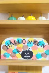 端材にハロウィンのステンシル&落書きです ハロウィンのステンシル&落書きボードです。小さなカボチャのステンシルシートを自作しました。色を変えて、スタンプのように端材にランダムにステンシルしました。その上から、黒のマジックで、カボチャ🎃とハロウィンロゴを手書きしました😆高さ約8センチ、幅約18センチのステンシル&落書きボードが