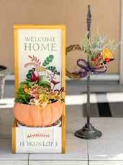 ポーチプランター 想像以上に出来栄え良くて、Board & Brush ハマりそうです。愛犬の名前入りもポイント、ハロウィンの寄せ植えも添えてみました!