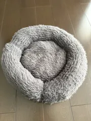 着なくなったカーディガンをリメイクしてベッドを作りました袖の手首の部分が少し細くなりましたがアゴ乗せに良いかな😁