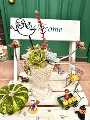 🎃ハッピーハロウィン🎃 トリックオアトリート👻春に寄せ植えした多肉ちゃん、夏を耐えて生き残った強い子たち。なんだかハロウィンぽいなぁと。ちょっとお直しして、去年のハロウィンにいただいたみかんさんお手製のピックを指したら、あら可愛い🧡🧡🧡こちらも去年みかんさんにいただいたカボチャ🎃のピックをさして。↓自分で作ったリメ缶たちは