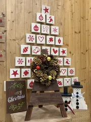 リーススタンド (DP-54) Lv.♪♪を作ってきました😆 ノコギリスタートと聞いていたので早めに着きたかったのに、渋滞でギリギリ💦でも、squareで教えてもらってたおかげで慌てることなく取りかかれました。色は超撥水ブラウン🤎にしました。ウッドリースが複数あるので、フック用のビスは持ち帰り。良きところに合わせる感じで固定したり、蝶番のビスがフシにぶち当たっ