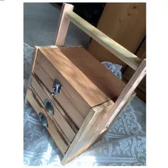 なんちゃってDIY♪ ネットで見つけて、私も作ってみたい!と思って、材料を調達😊 セリアの木箱4個セリアの板丸棒はセリアには売ってなかったので、ダイソーで他にアイアンパーツをセリアで買ってきました。 木工用ボンドで組み立てて、ミニビスを打ち込みました♪ 出来上がって、引き出しを開けたところで