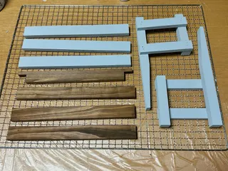 工作ミニベンチを作成中 先日kumimokuのキットを使用したコラムを読んでミニベンチキットDXを買う気でカインズに行ったのですが色々見ていたら違うものが気になってそっちを購入してきました、しかも2つ😂 小物などが置けるような卓上サイズのミニベンチキットです組み立てに最低限必要なのはボンドのみ☺️工作ミニベンチの