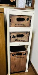 捨てる家具も、金具などは外しておく方が分解してコンパクトに捨てられるし、こうして別のものに再利用できますね! ナイスエコ👍✨ それにしてもありものだけで 作ったとは思えない出来栄えの 素敵な👟BOX✨✨✨ 例の塗料と一緒にmiminさんが写ってないのだけが残念…🤭