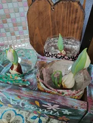 ほんのり色づき🌷 昨日よりも左側のチューリップ🌷が色づき始めました✨