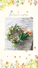 3色チューリップのリース🌷🌷🌷 Natural KitchenのWSに参加しました🤗💕このチューリップ、触ると柔らかいんです🌷✨つるのリースが隠れるように花🌼を挿していき、リボン🎀の結び方も教わりました💝