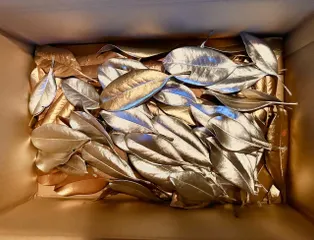 毎年12月になってからあたふたと準備するもんだから、楽しむ期間が短くなってしまうクリスマス。今年こそ少しでも長く楽しみたい!と、いうことで、リースの素材作りを始めました。まずは散歩の度に拾い集めていた泰山木(たいさんぼく)の落ち葉にメッキ調ラッカーをプシャー。泰山木はモクレンの仲間で常緑樹なんですけ